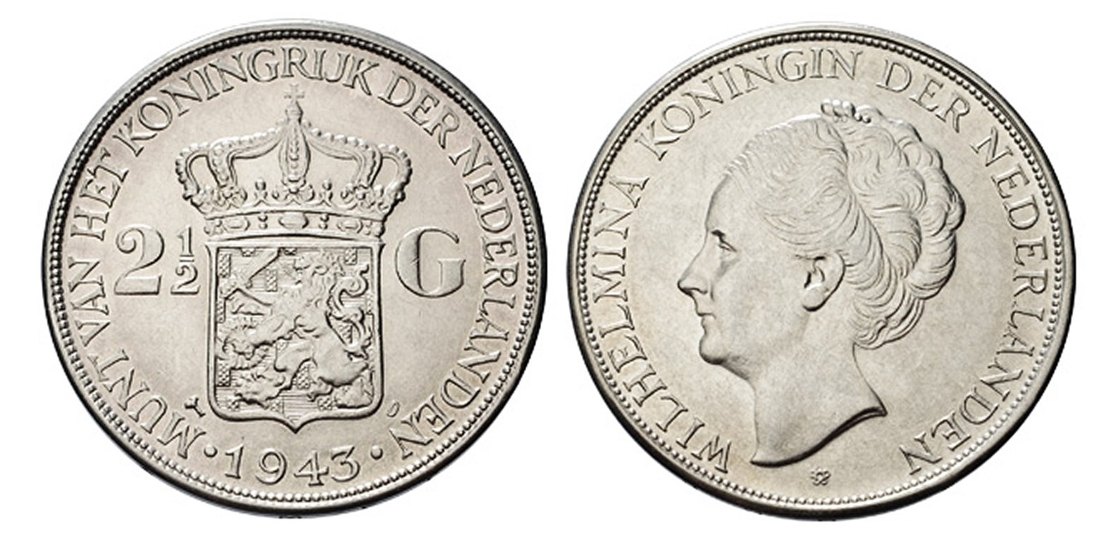 Nederland 2 1/2 gulden 1943 Wilhelmina ZFR