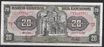 20 sucres april 1986 P 121A-a Serie LO UNC