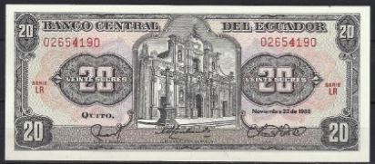 Mooi UNC biljet van 20 sucres 1988. Nummer kan afwijken. P 121A-a