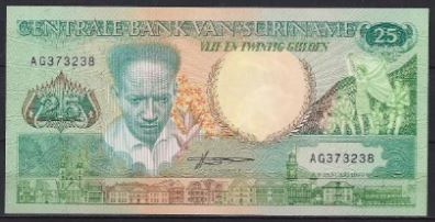 Suriname 25 gulden 1988 unc. nummer kan afwijken