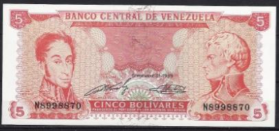 Venezuela 5 Bolivares 1989 unc. nummer kan afwijken. P 70-a