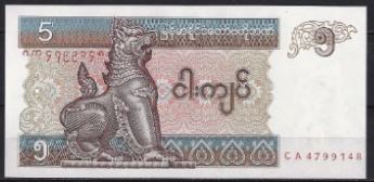 Myanmar 5 Kyata 1996 unc. nummer kan afwijken