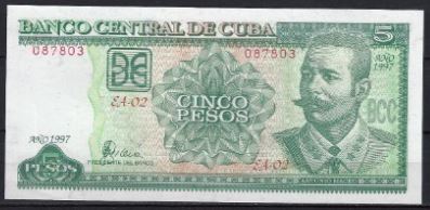 Cuba 5 pesos 1997 unc. nummer kan afwijken. P 116-a