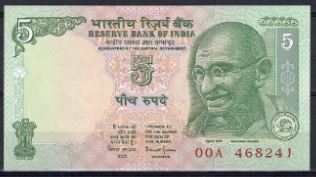 India 5 Rupees 2002 unc. nummer kan afwijken