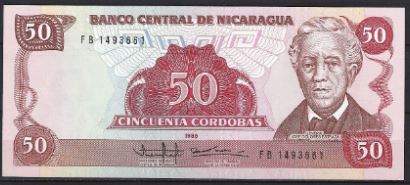 Mooi UNC biljet van 50 cordobas 1988. Nummer kan afwijken. P 153