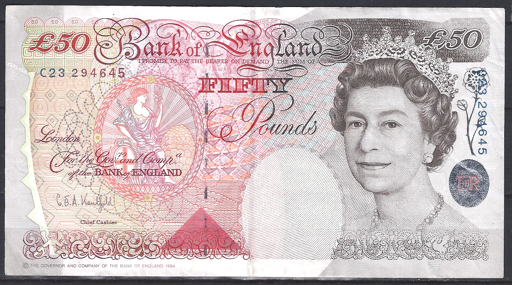 Licht gebruikt biljet Engeland 50 Pounds 1994 ZFR/PR