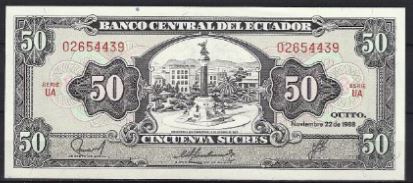 Mooi UNC biljet van 50 sucres 1988. Nummer kan afwijken. P 122-a
