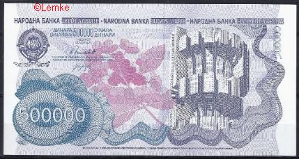 Joegoslavie 500.000 Dinara 1989 unc. nummer kan afwijken