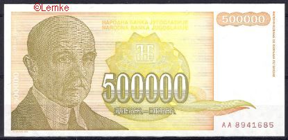 Mooi UNC biljet van 500.000 dinara 1994. Nummer kan verschillen.