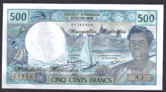 Mooi biljet New Hebrides 500 Francs P 19-c aUNC