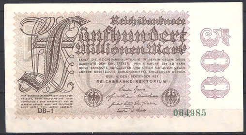 500 Millionen Mark 1923 P 110-e1 UNC-