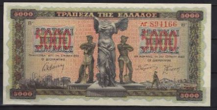 Griekenland, 5000 Drachmai 1940 unc. nummer kan afwijken