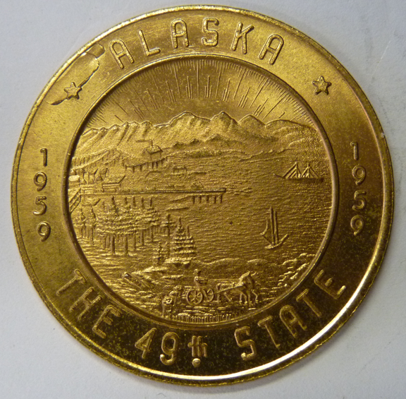 Bronze medal, 1 Tradedollar 1959. USA, Alaska, the 49th State. Ø 38 mm