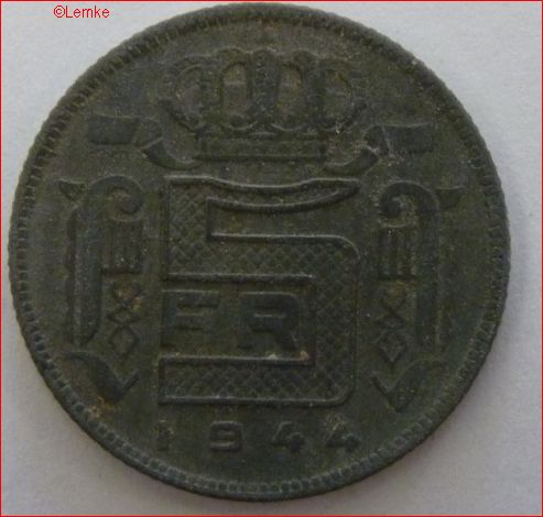 Belgie 5 Frank 1944 XF