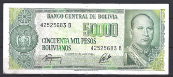 Gebruikt biljet Bolivia 50.000 Pesos Bolivianos 5-6-1984 P 170-a ZFR+