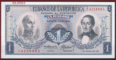 UNC biljet Colombia Un Peso Oro 1973 P 404-e