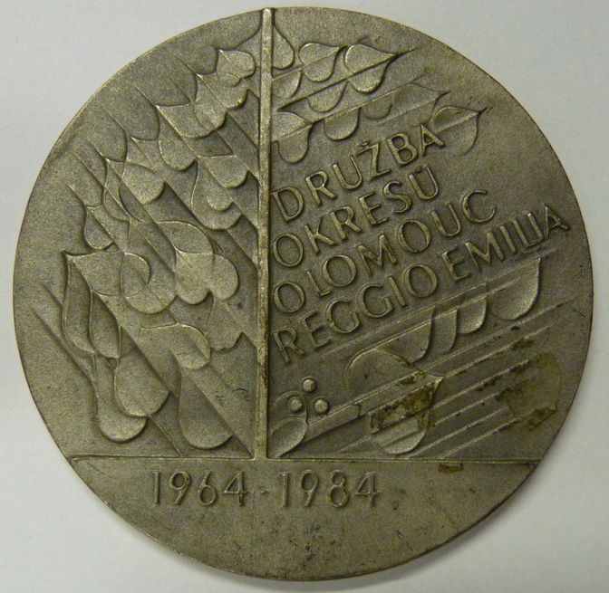 Medal Tsjecho Slowakije. Druzba Okresu Olomouc Reggio Emilia 1964-1984. Ø 60 mm
