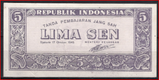 UNC biljet Indonesia 5 Sen 1945 P 14