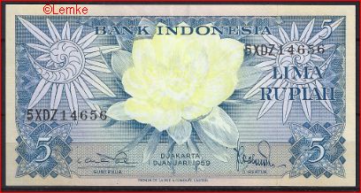 UNC biljet Indonesia 5 Rupiah 1959 P 65