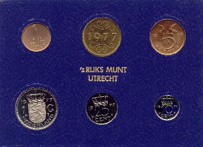 Jaarset 1977 in blauw karton in plastic hoes met penning van de Rijks Munt