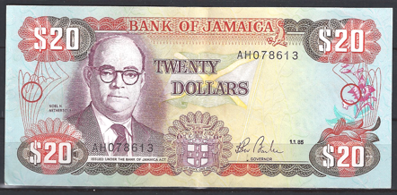 Mooi biljet Jamaica 20 Dollars 1985 P 72-a PR/XF