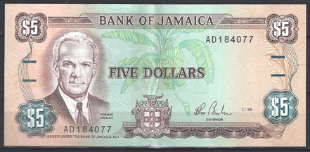 Mooi biljet Jamaica 5 Dollars 1985 P 70-a PR/XF