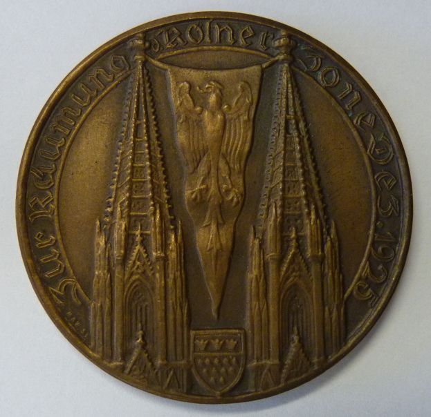 Bronzen medaille, Zur Raumung der Kolner Zone, Koln, Rheinland 1925. Very RARE. Ø 50 mm