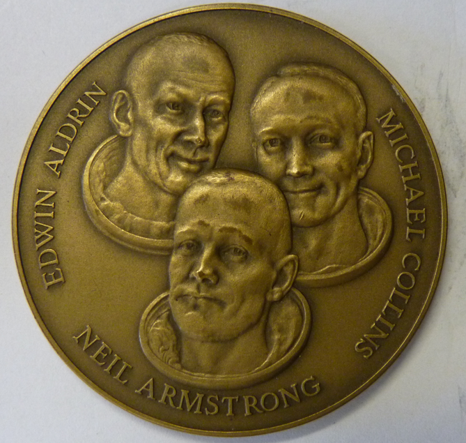 Bronze medal First Moonlanding Apollo XI 1969 Edwin Aldrin, Neil Armstrong and Michael Collins Ø 50 mm