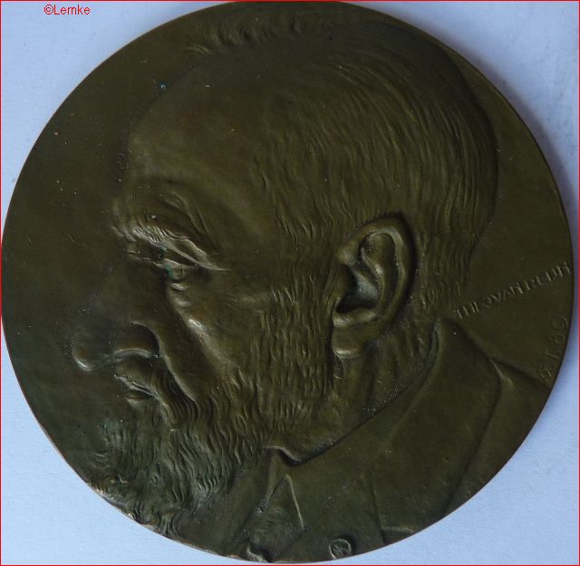 Bronzen herinneringspenning aan Mr. P.W.A. Cort van der Linden, 1846-1935. Minister-president tijdens de 1e Wereldoorlopg door Theo van Reijn. Ø 60 mm