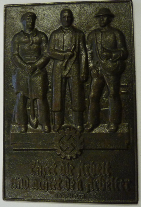 Erinnerungsplaquette Deutsche Arbeitsfront “Ehret die Arbeit und Achtet den Arbeiter” 1914-1918. 98 x 144 mm