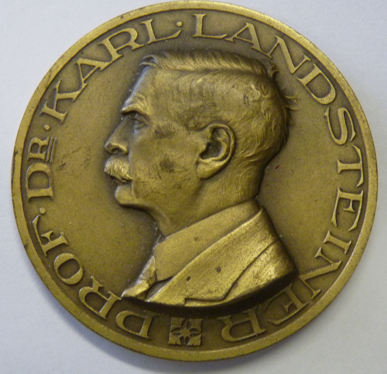 Bronzen penning Prof Dr. Karl Landsteiner, Roode Kruis, Sanquin door J.J. van Goor. Ø 50 mm