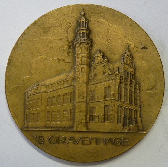 Bronzen penning ter herinnering aan de Residentieweek 1936 in Den Haag. Ontwerp: J.J. van Goor Ø 50 mm