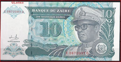 10 Nouveaux Zaires 24-6-1993 P 54-a UNC