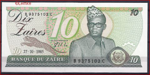 10 Zaires 27-10-1985 P 27A UNC